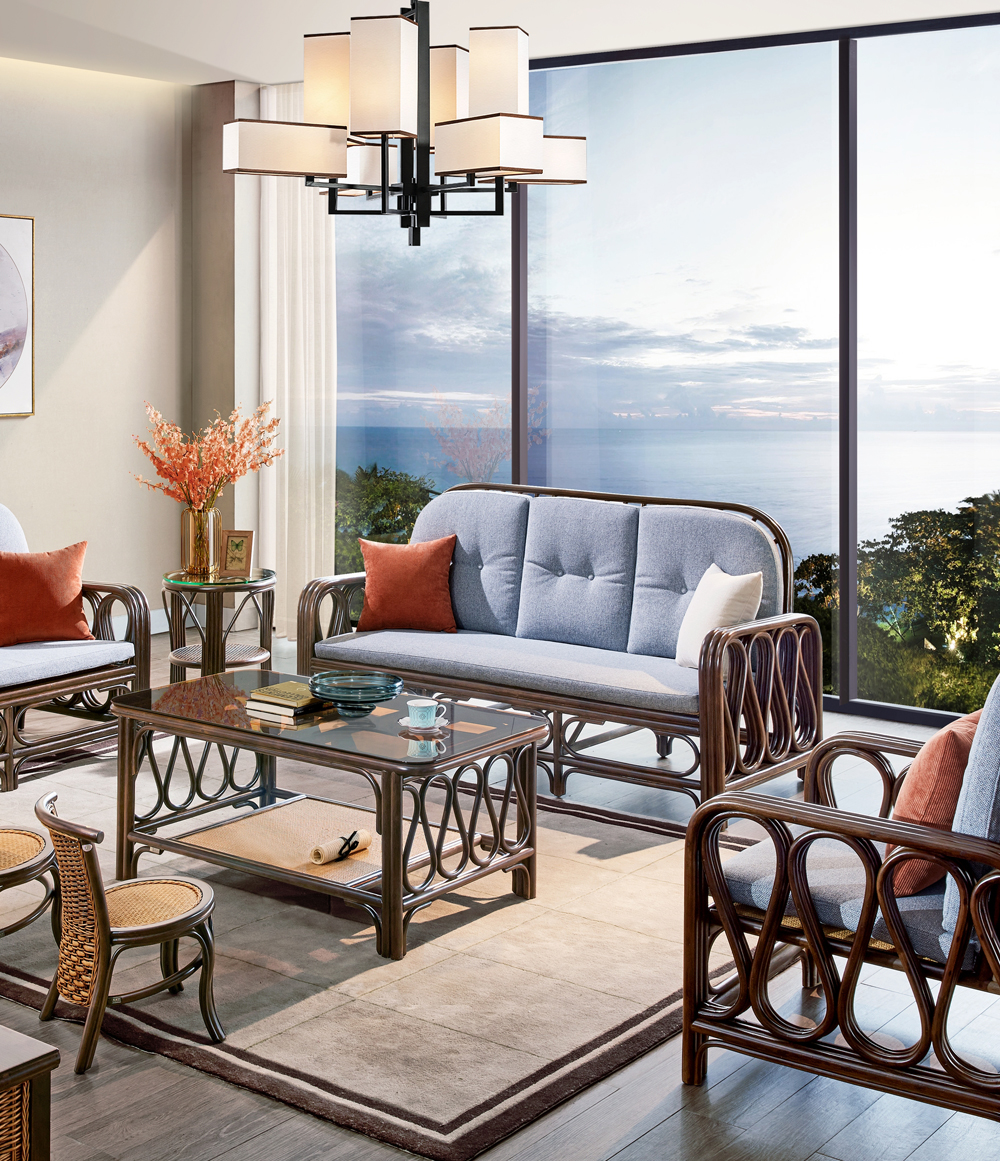 主材:印尼進口藤條+布藝+玻璃