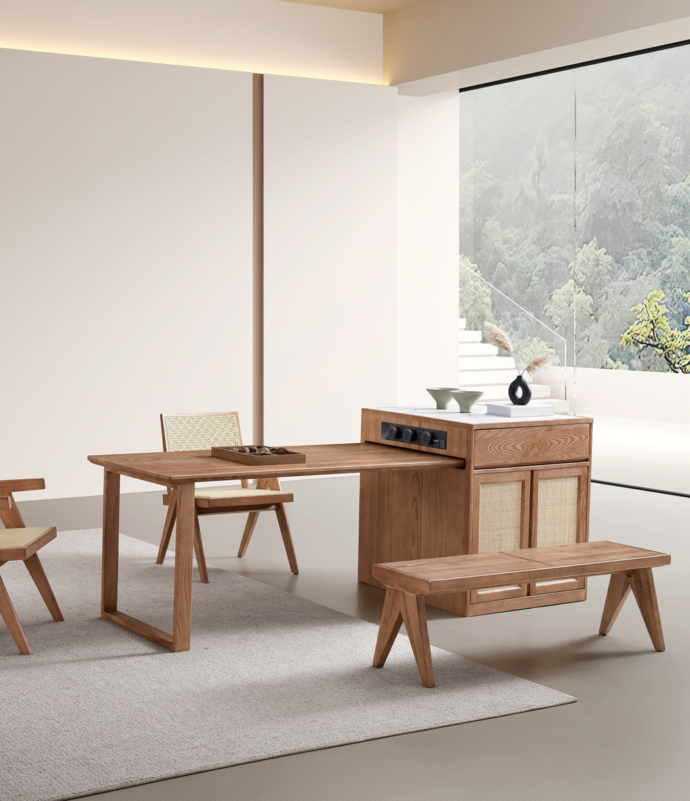 主材:北美進口白蠟木+印尼進口藤條+巖板